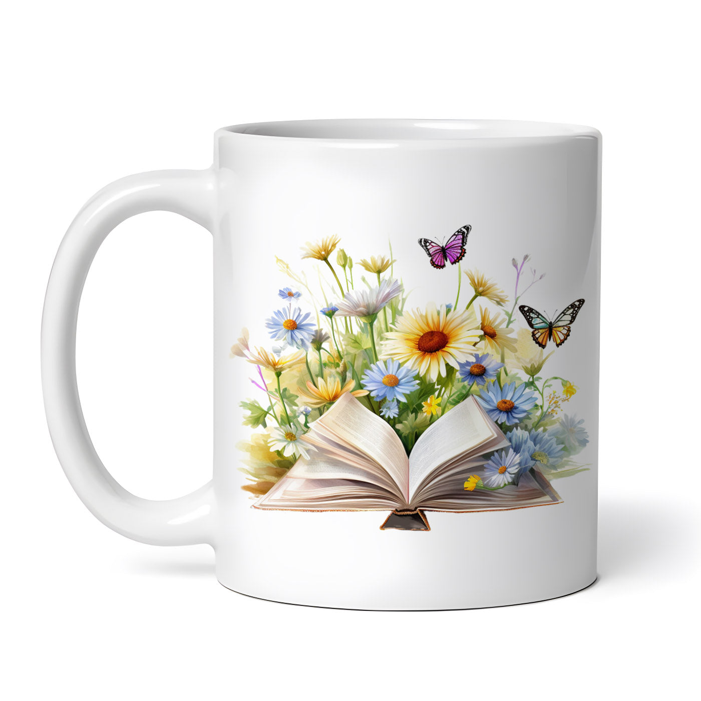 - Cana ceramica, Carte si flori Nashira, NO4280, 330 ml, Multicolor