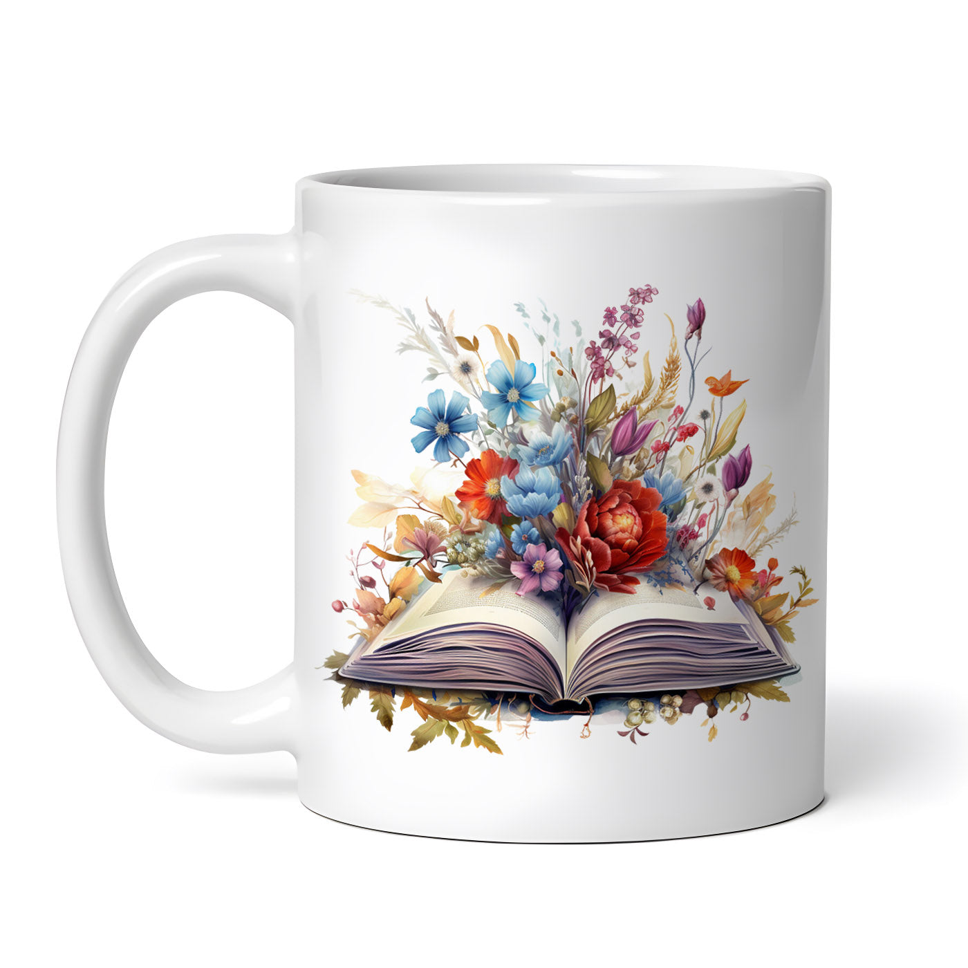 - Cana ceramica, Carte si flori Riny, NO5162, 330 ml, Multicolor