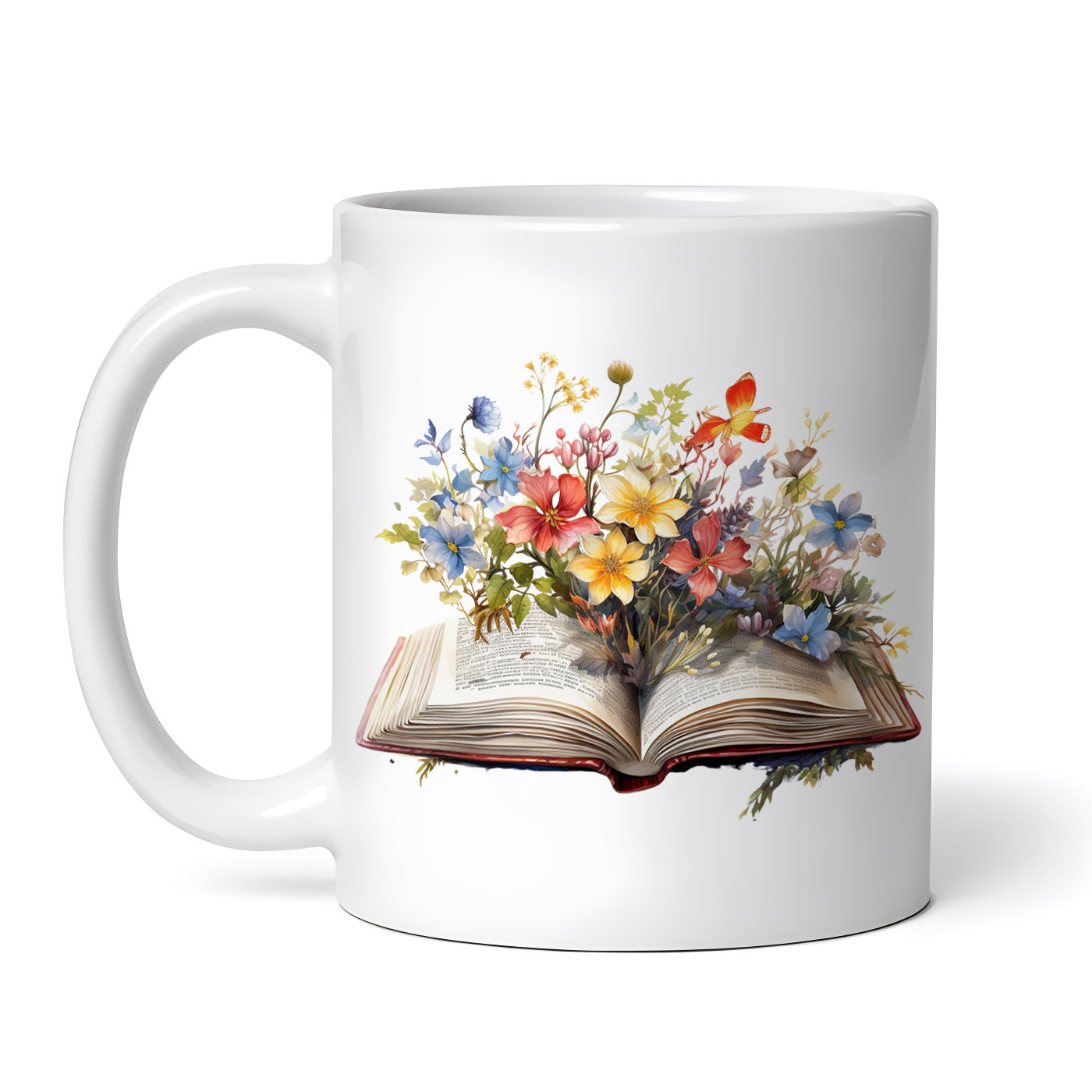 - Cana ceramica, Carte si flori Sara, NO855, 330 ml, Multicolor