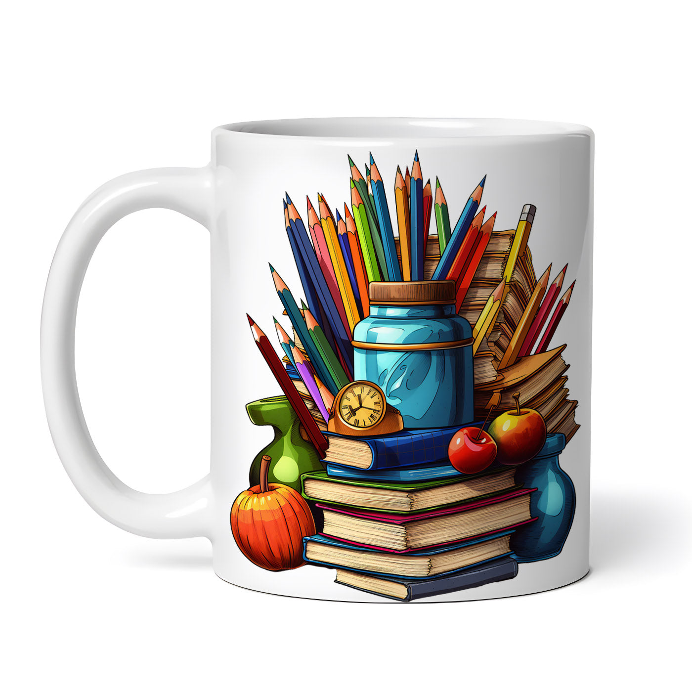 - Cana ceramica, Carti creioane si fructe, NO3395, 330 ml, Multicolor