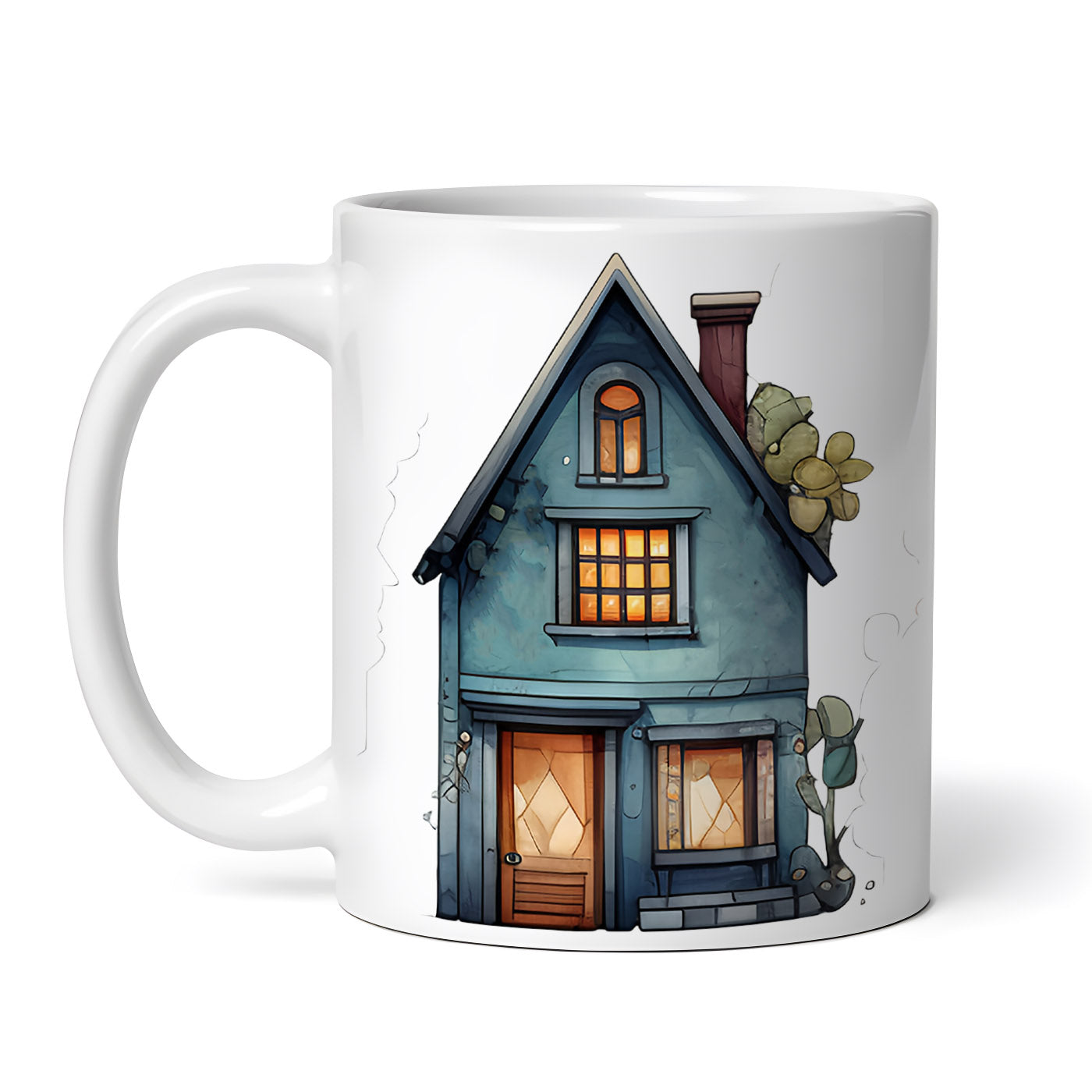 - Cana ceramica, Casa albastra, NO1196, 330 ml, Multicolor