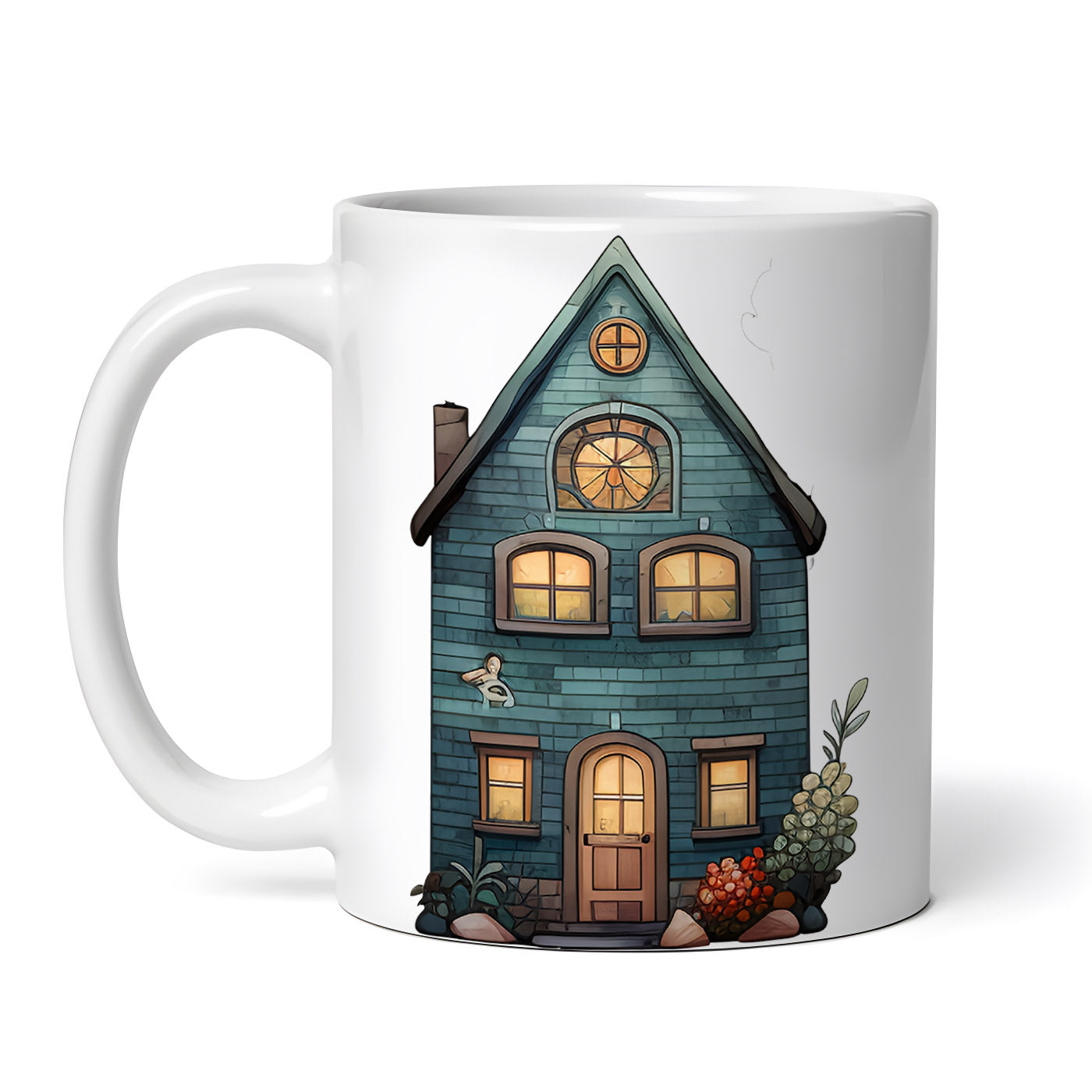 - Cana ceramica, Casa cu caramizi albastre, NO1538, 330 ml, Multicolor