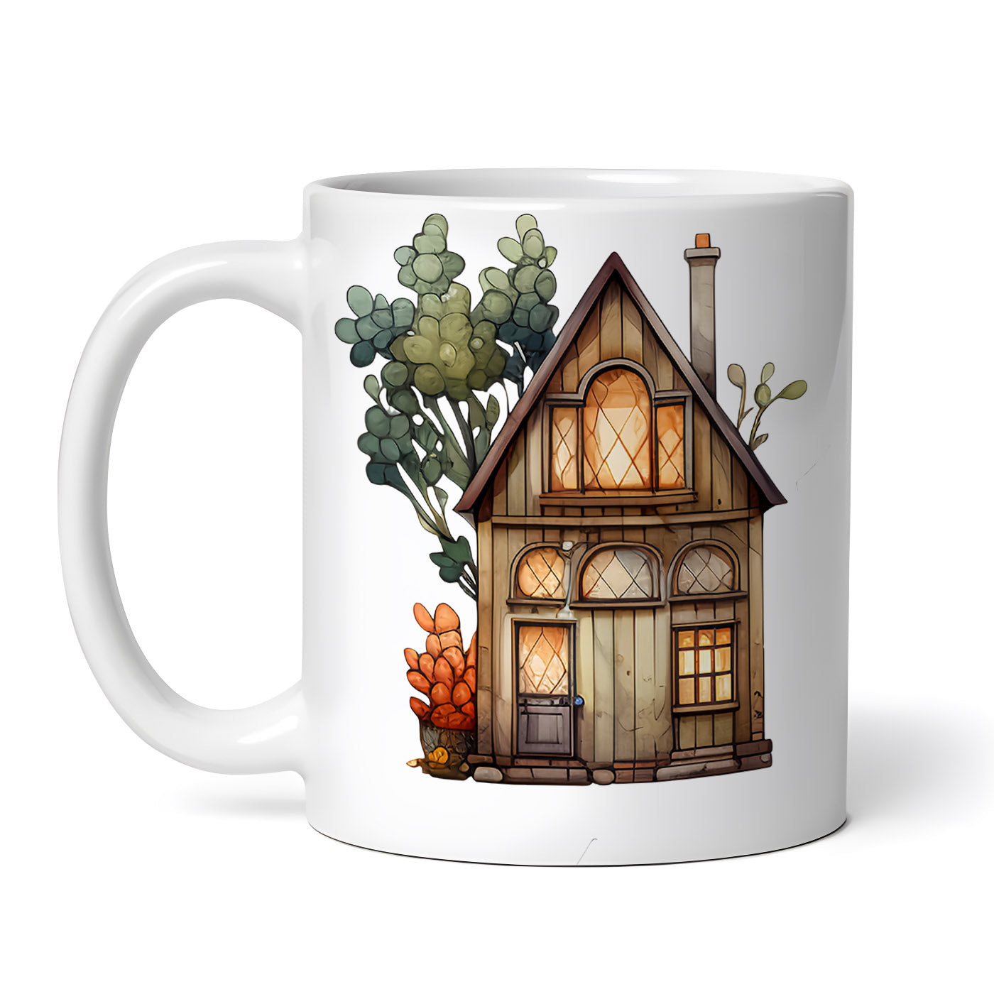 - Cana ceramica, Casa de lemn maro, NO112, 330 ml, Multicolor