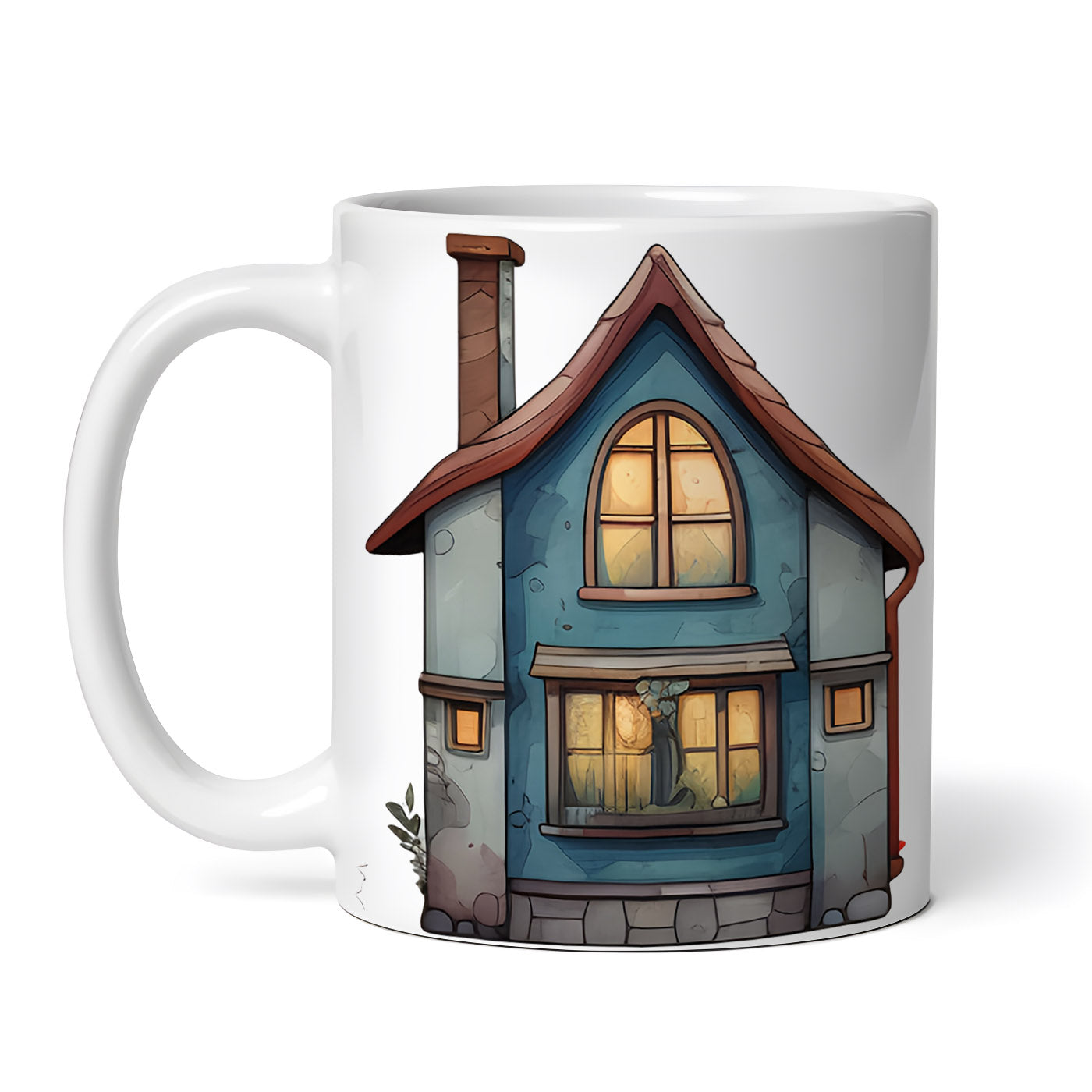- Cana ceramica, Casa de piatra albastra, NO4808, 330 ml, Multicolor