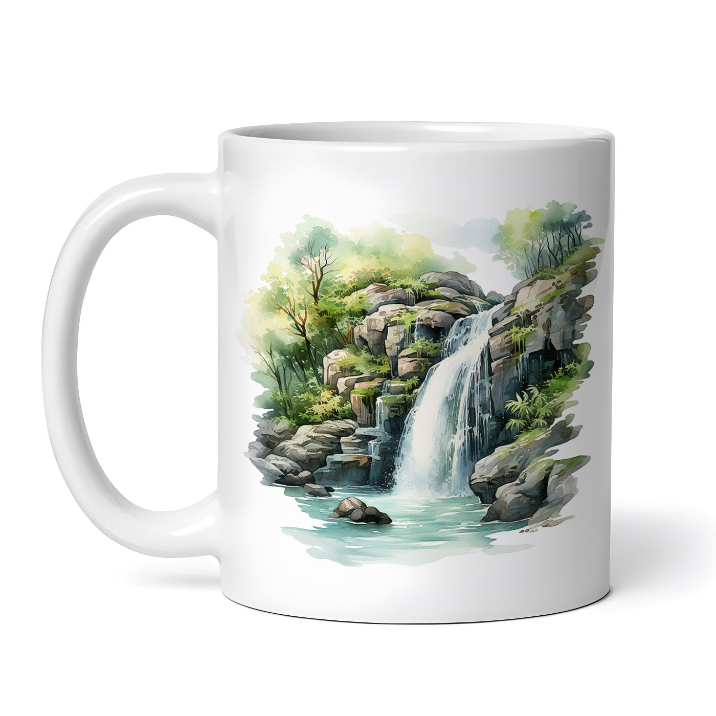 - Cana ceramica, Cascada cu pomi verzi, NO5205, 330 ml, Multicolor