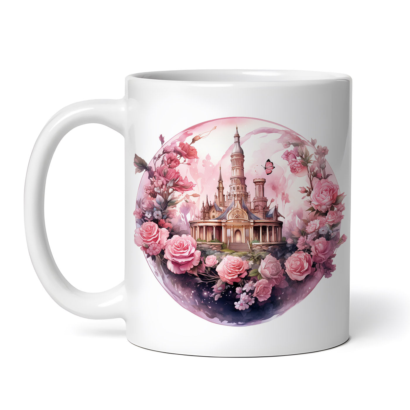 - Cana ceramica, Castelul cu trandafiri roz, NO3857, 330 ml, Multicolor