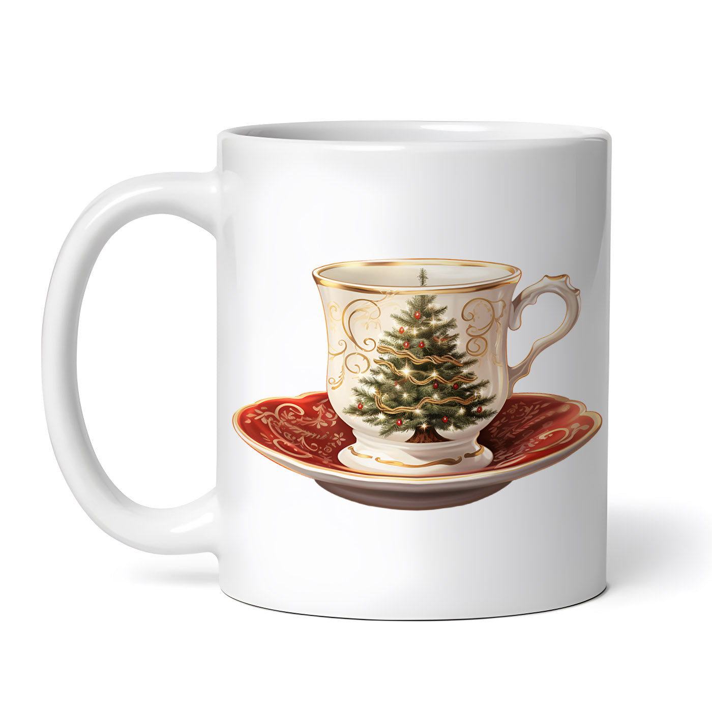 - Cana ceramica, Ceasca de cafea cu bradut, NO055, 330 ml, Multicolor