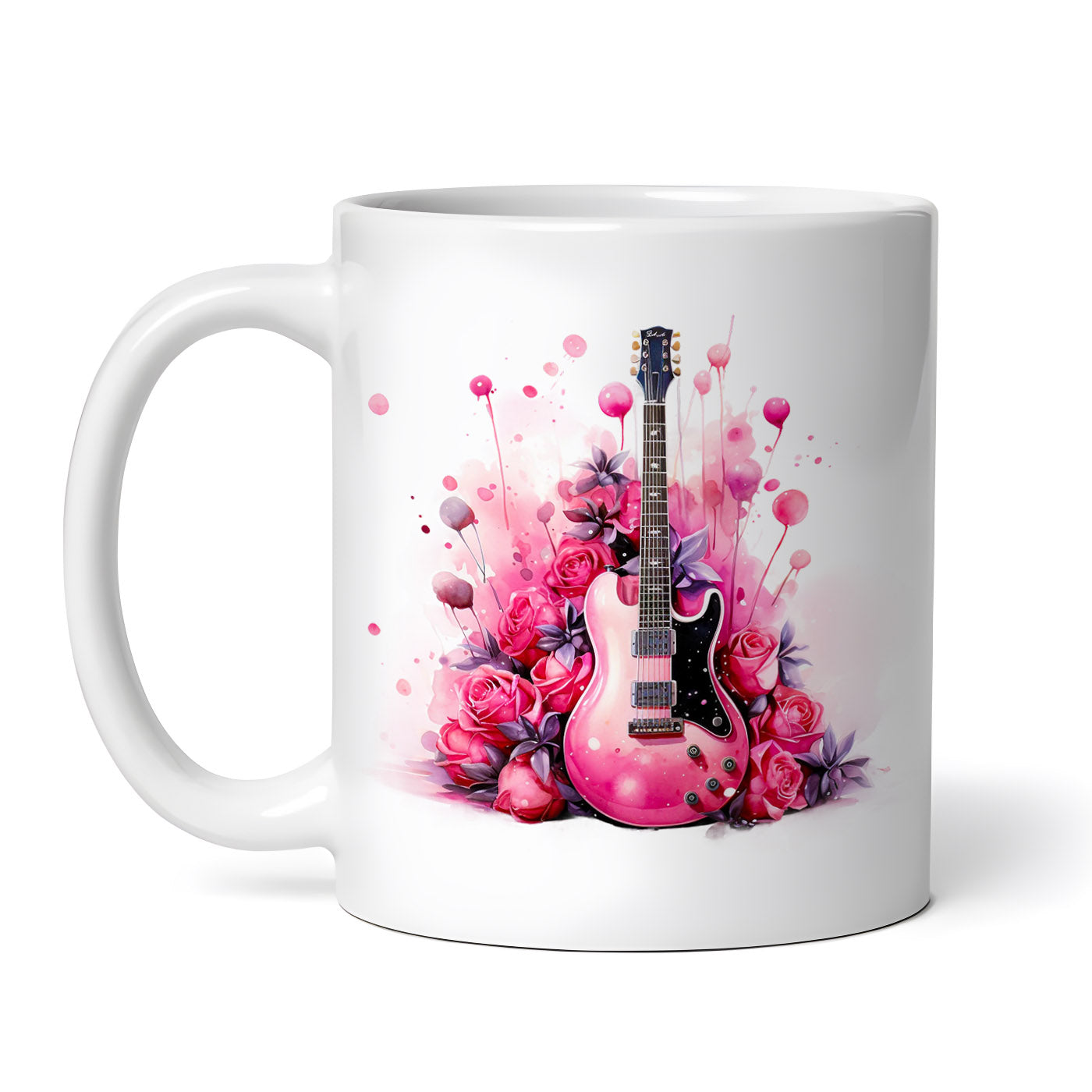 - Cana ceramica, Chitara cu trandafiri roz, NO1572, 330 ml, Multicolor