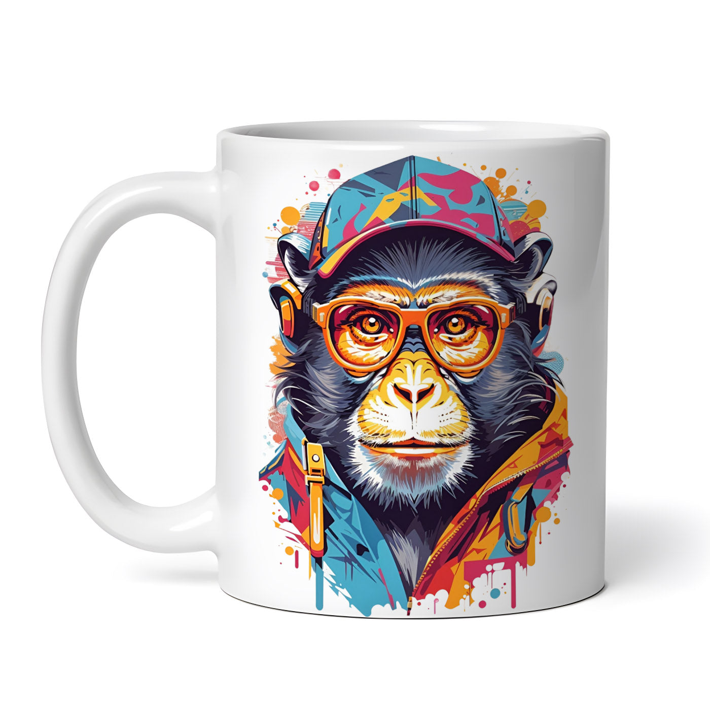 - Cana ceramica, Cimpanzeul cu ochelari si sapca, NO6616, 330 ml, Multicolor