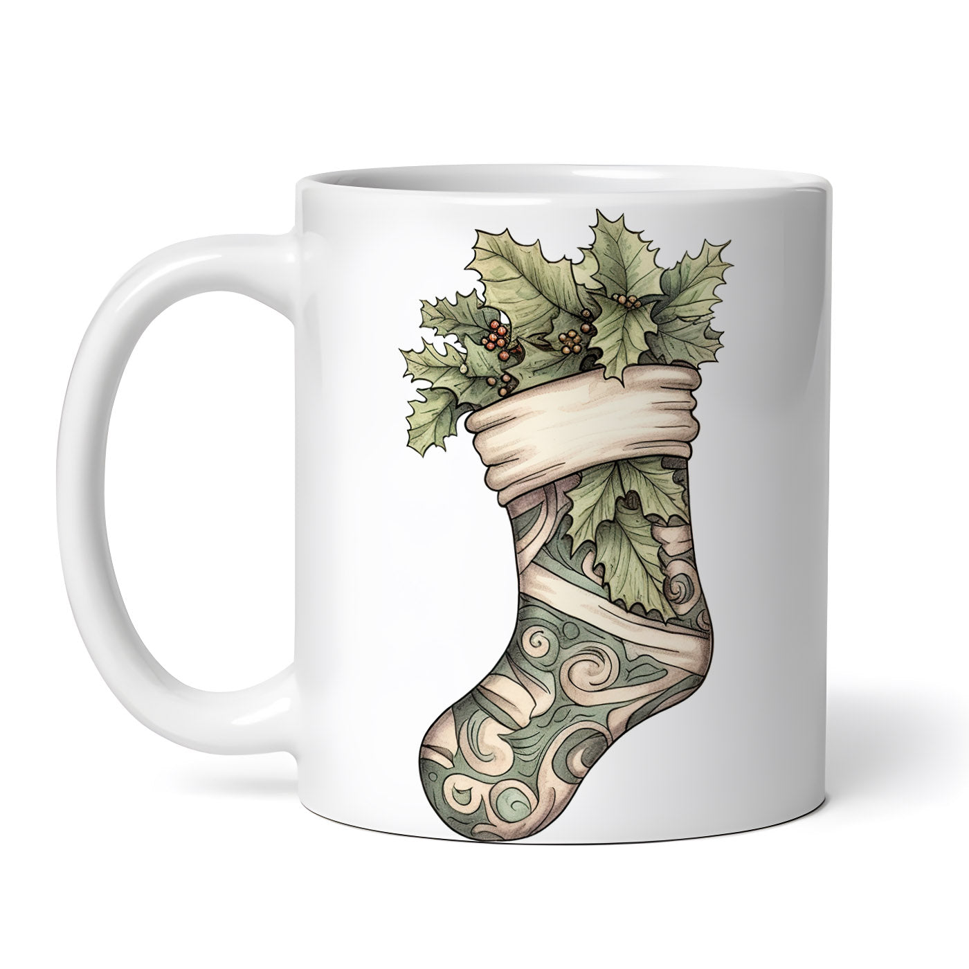 - Cana ceramica, Ciorapul de craciun cu frunze de artar, NO2955, 330 ml, Multicolor