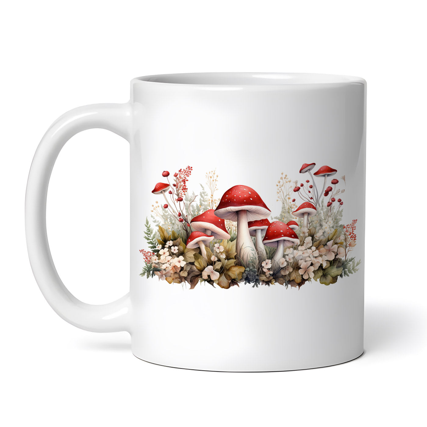 - Cana ceramica, Ciupercile cu codita alba, NO6434, 330 ml, Multicolor