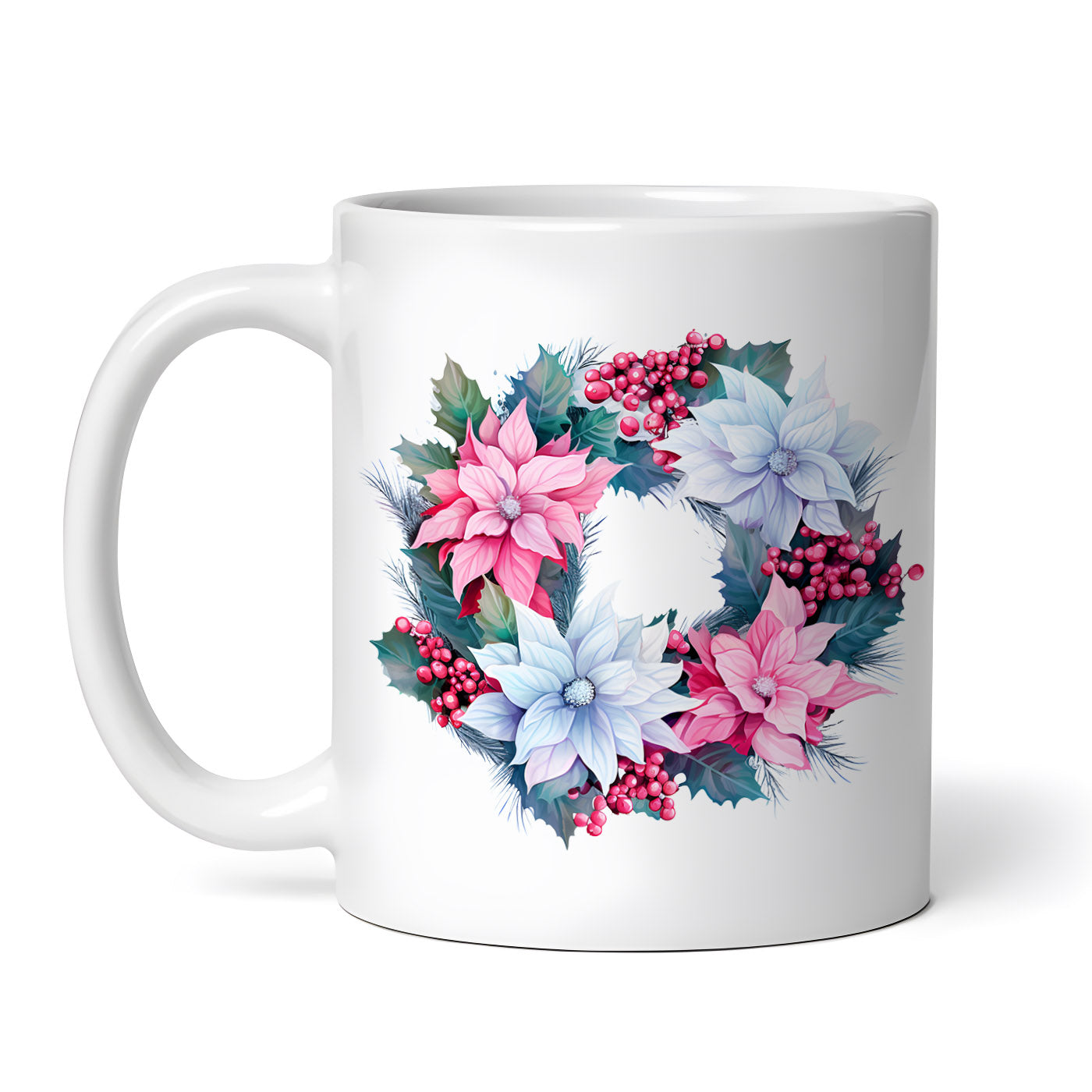- Cana ceramica, Craciun roz bleu Aranjament floral, NO965, 330 ml, Multicolor