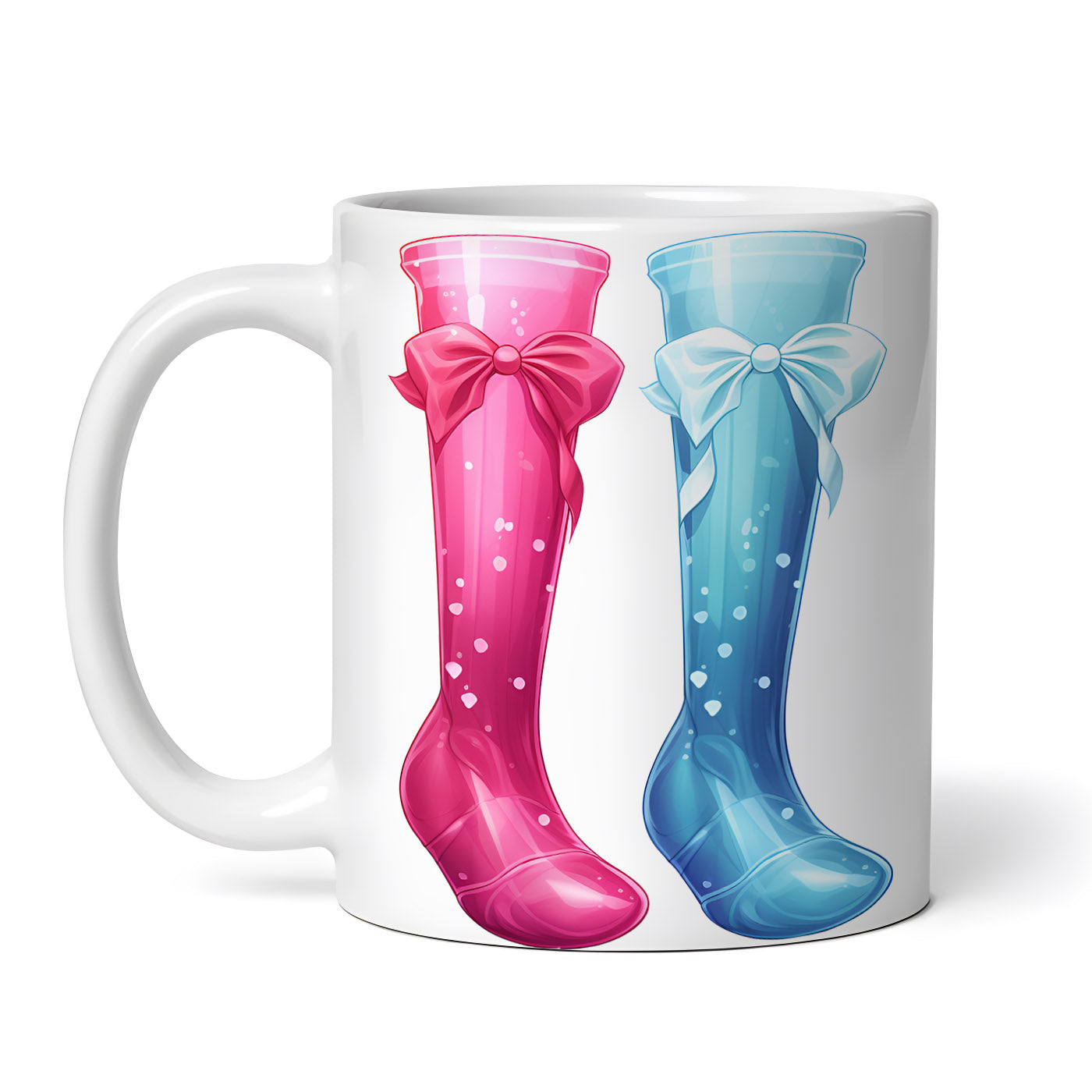 - Cana ceramica, Craciun roz bleu Ciorapi de cadouri, NO2940, 330 ml, Multicolor