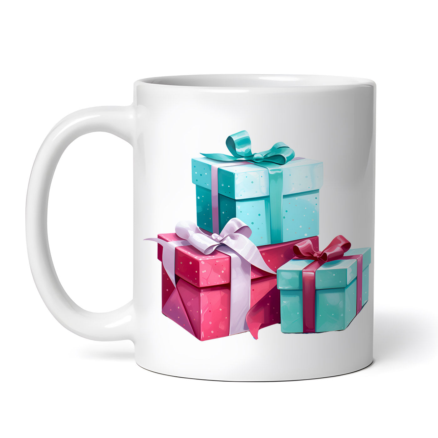 - Cana ceramica, Craciun roz bleu Cutii de cadouri, NO6216, 330 ml, Multicolor