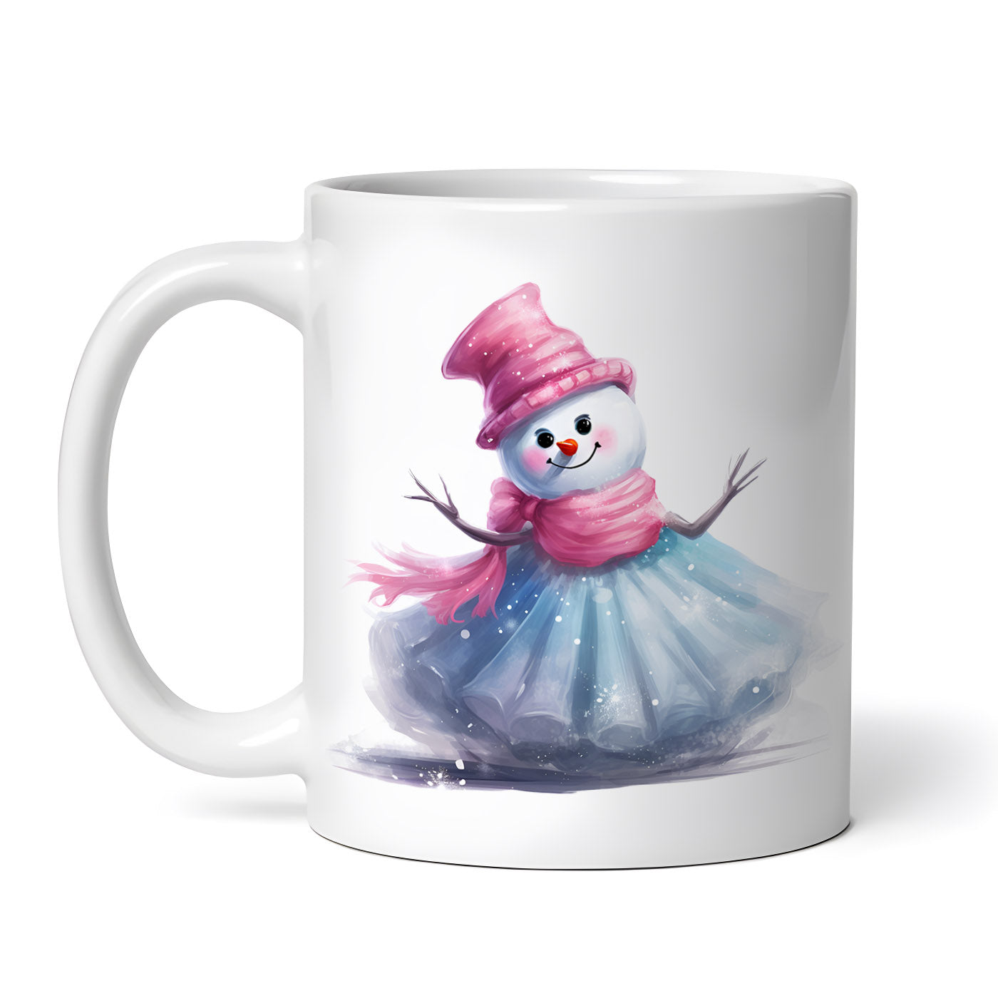 - Cana ceramica, Craciun roz bleu Omul de zapada cu rochita, NO6515, 330 ml, Multicolor