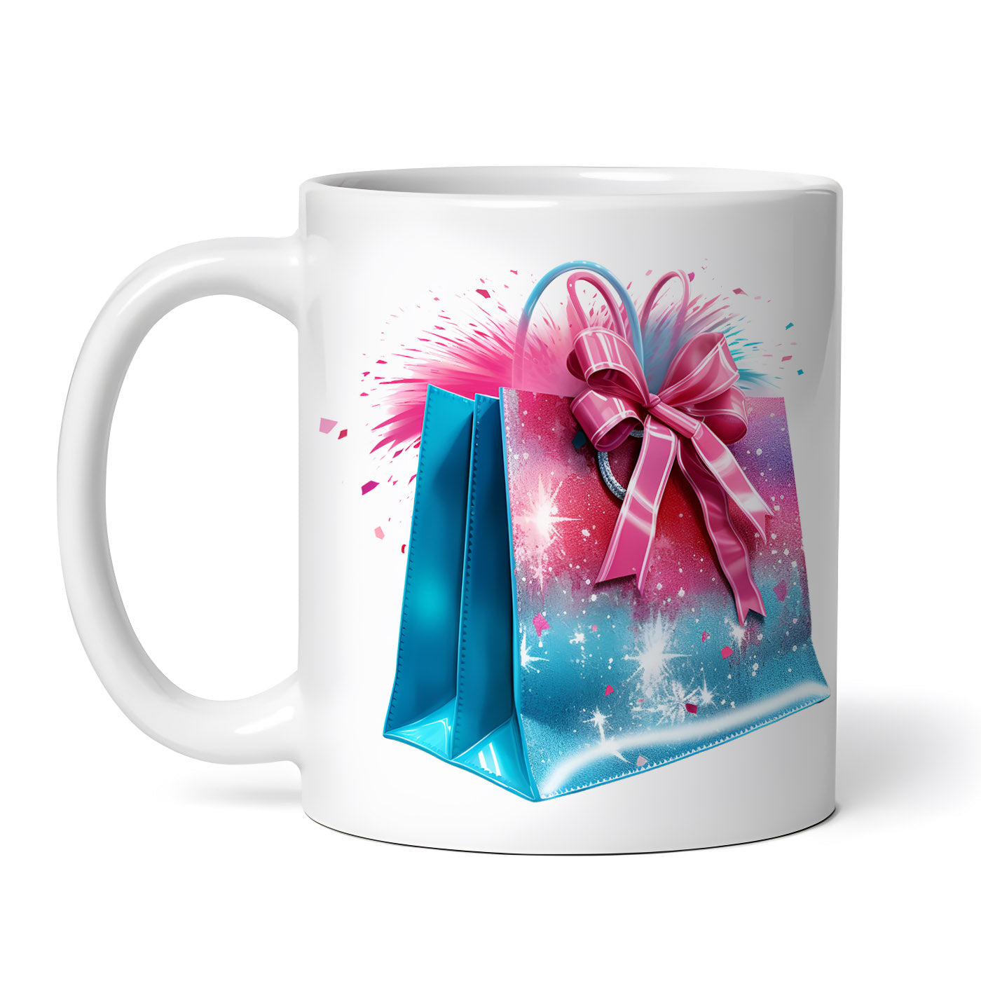- Cana ceramica, Craciun roz bleu Punga cu cadouri, NO2045, 330 ml, Multicolor