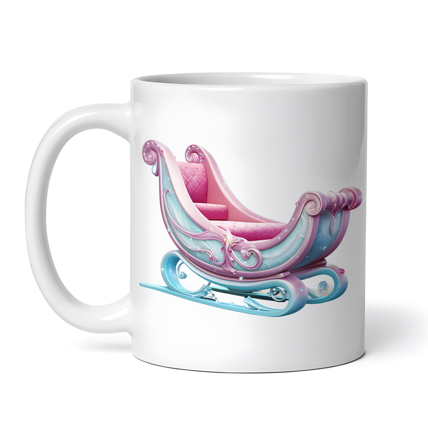 - Cana ceramica, Craciun roz bleu Sanie, NO279, 330 ml, Multicolor