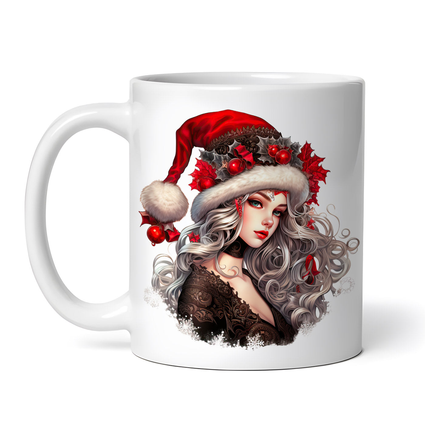 - Cana ceramica, Craciunita cu rochie neagra, NO1030, 330 ml, Multicolor