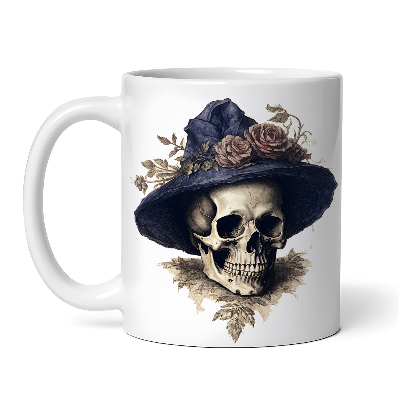 - Cana ceramica, Craniu cu palatie albastra cu flori, NO1744, 330 ml, Multicolor