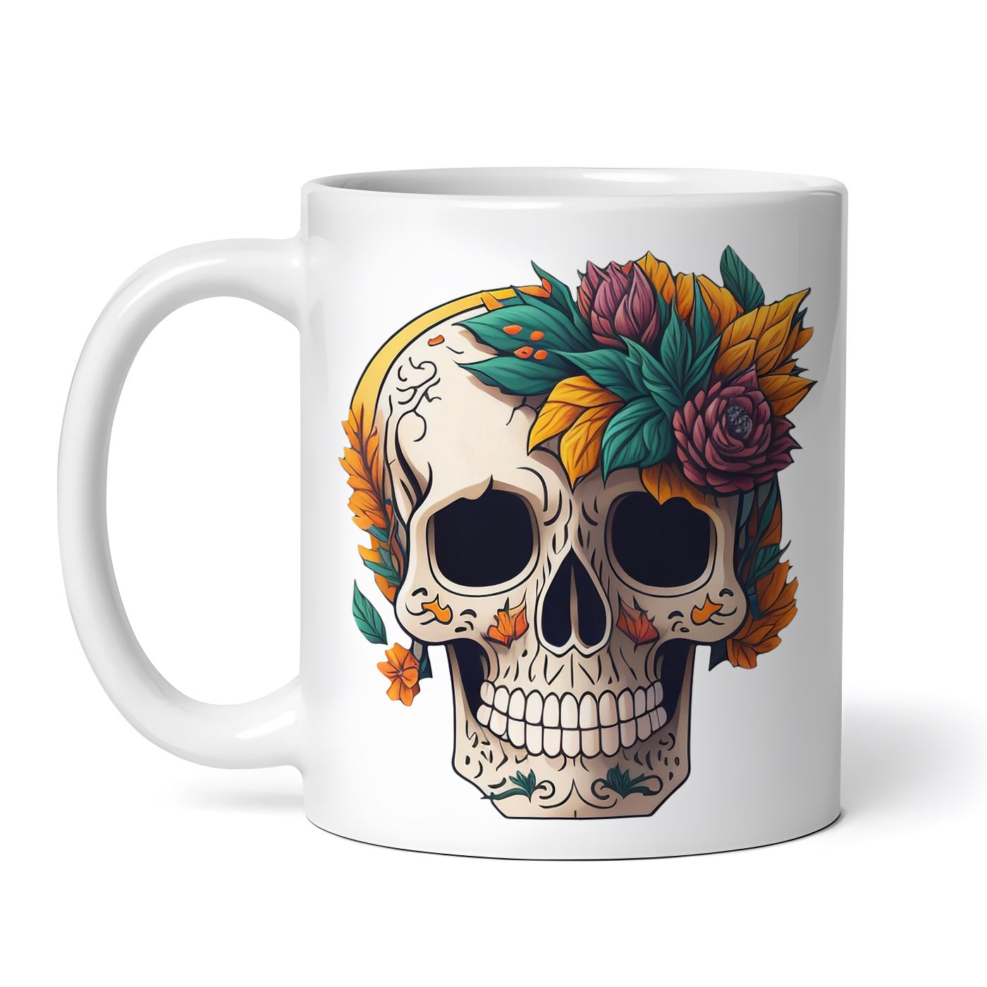 - Cana ceramica, Craniul cu flori in cap, NO5323, 330 ml, Multicolor