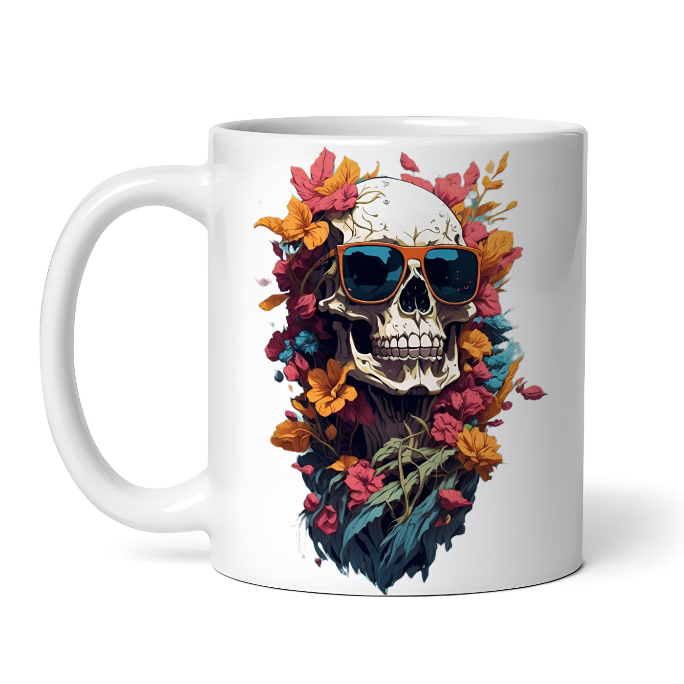 - Cana ceramica, Craniul cu ochelari si flori, NO6650, 330 ml, Multicolor