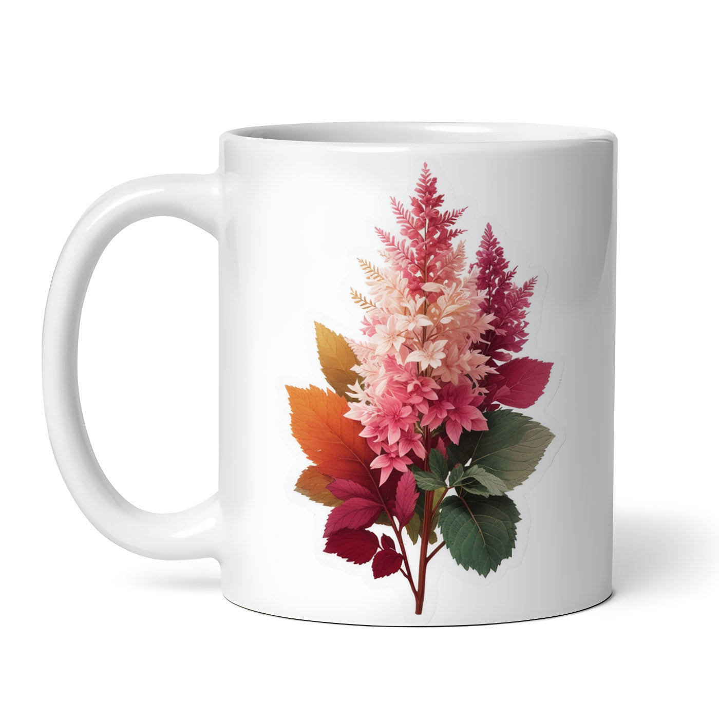 - Cana ceramica, Creanga cu flori de Astilbe, NO7703, 330 ml, Multicolor