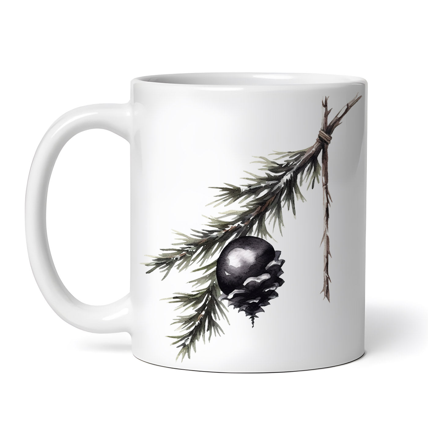 - Cana ceramica, Creanga de brad cu glob negru, NO6412, 330 ml, Multicolor