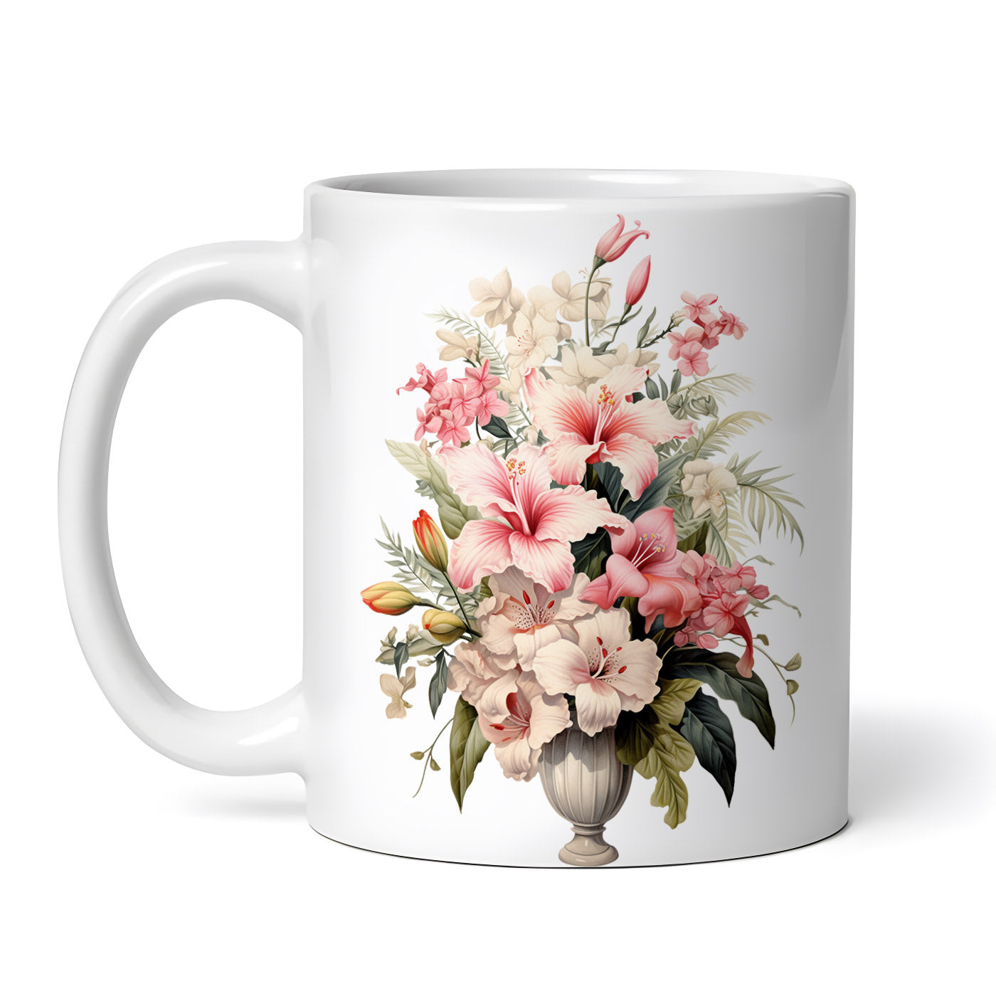 - Cana ceramica, Crini alb roz, NO6303, 330 ml, Multicolor