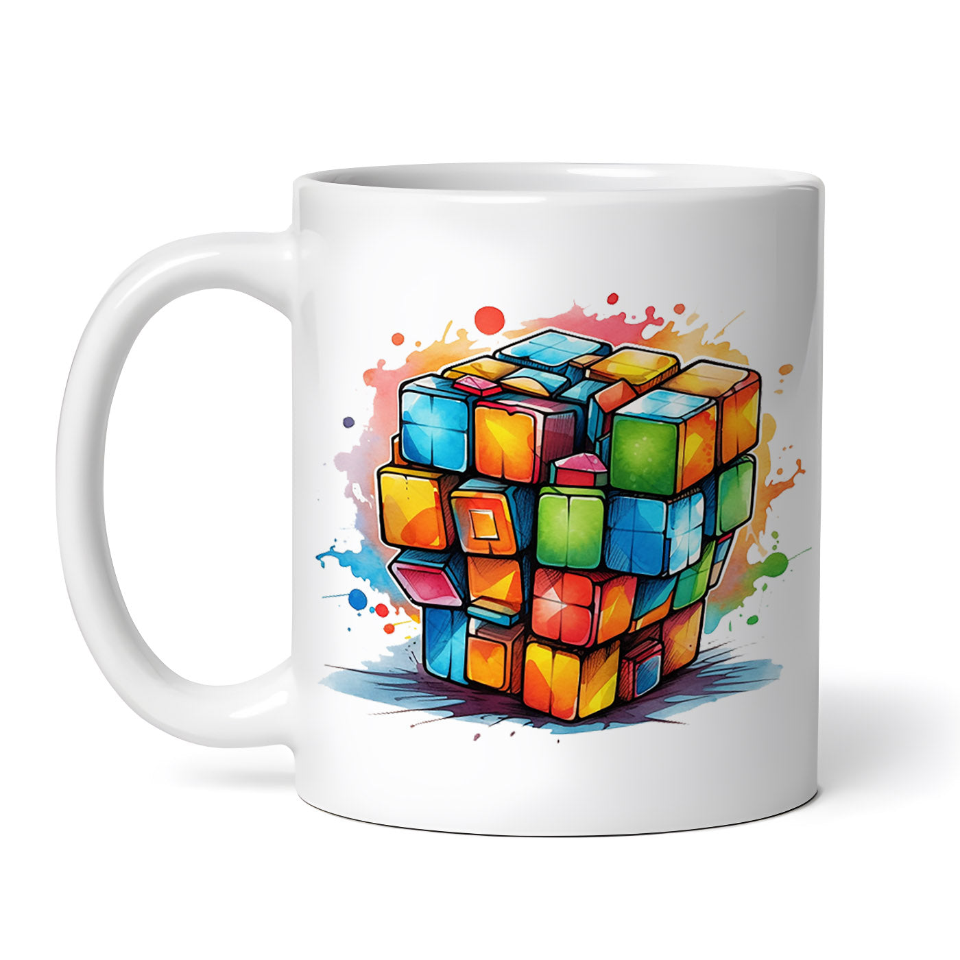 - Cana ceramica, Cub Rubik stilizat, NO947, 330 ml, Multicolor