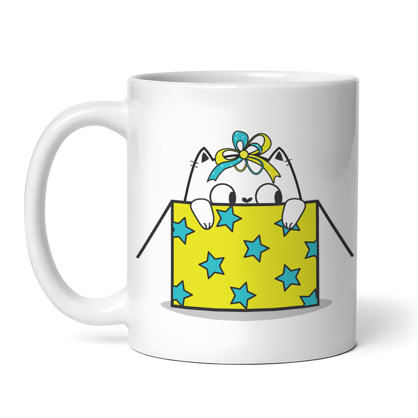 - Cana ceramica, Cutie cu o pisica surpriza, NO9759, 330 ml, Multicolor