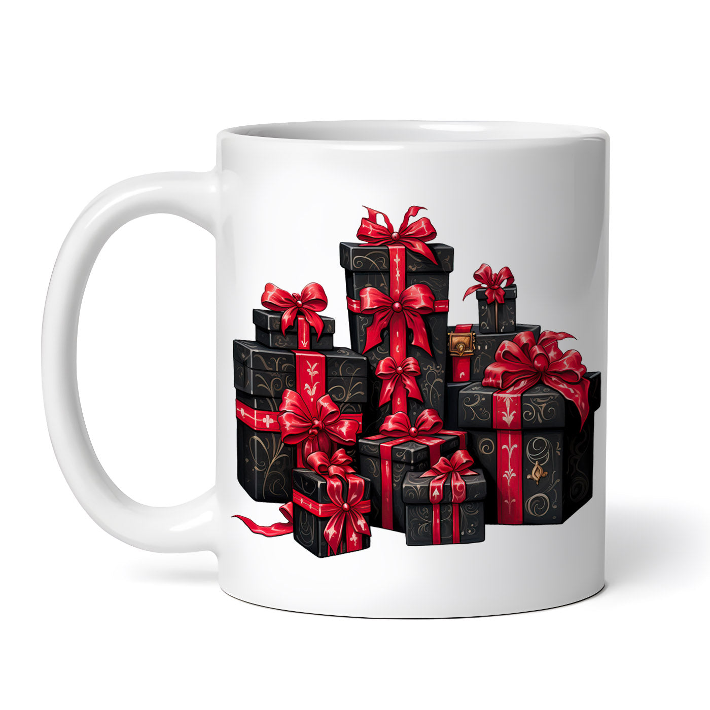 - Cana ceramica, Cutii de cadouri negre cu funda rosie, NO878, 330 ml, Multicolor