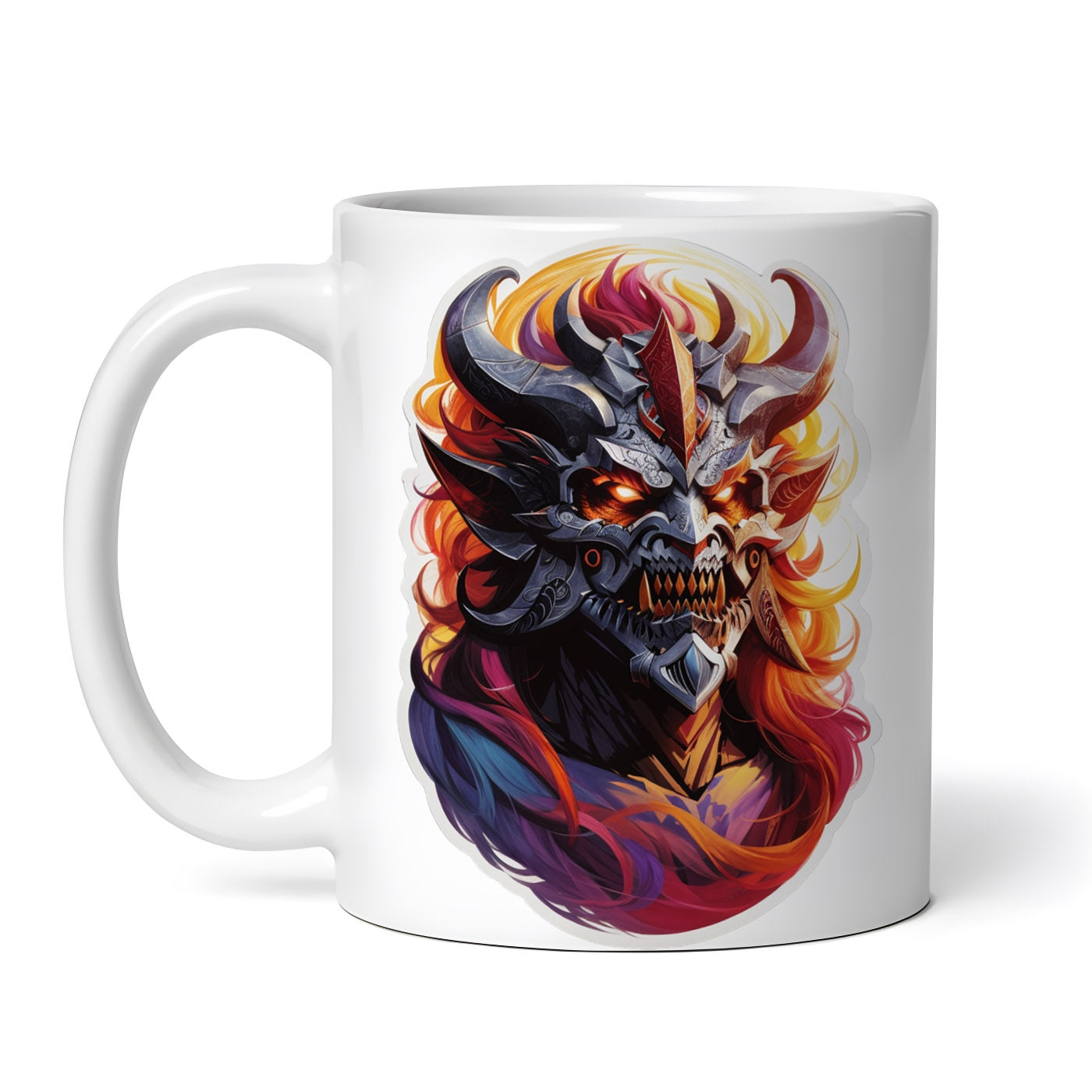 - Cana ceramica, Demonul Andras masca de lupta, NO7642, 330 ml, Multicolor