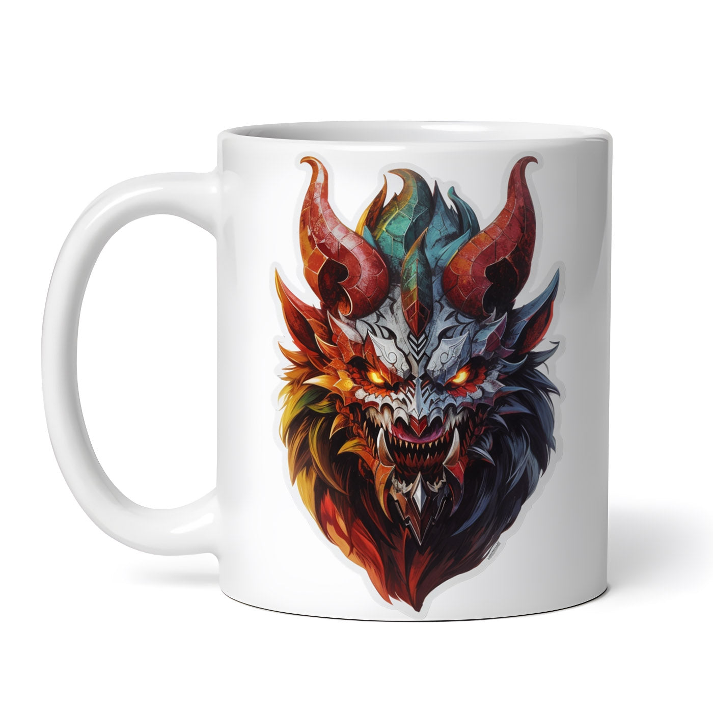 - Cana ceramica, Demonul Orobas cu coarne si colti, NO8641, 330 ml, Multicolor