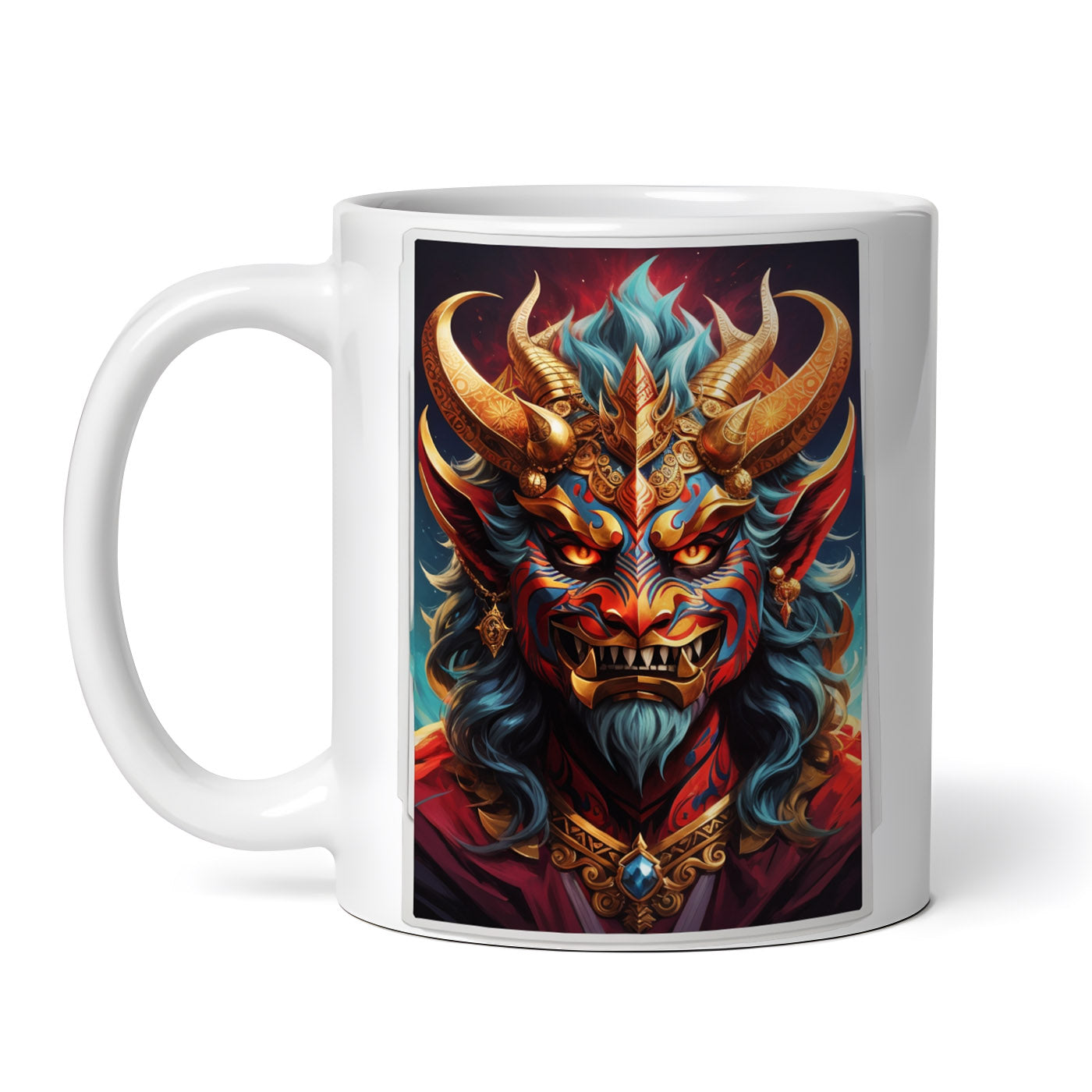 - Cana ceramica, Demonul Paimon cu coarne si colti, NO8654, 330 ml, Multicolor