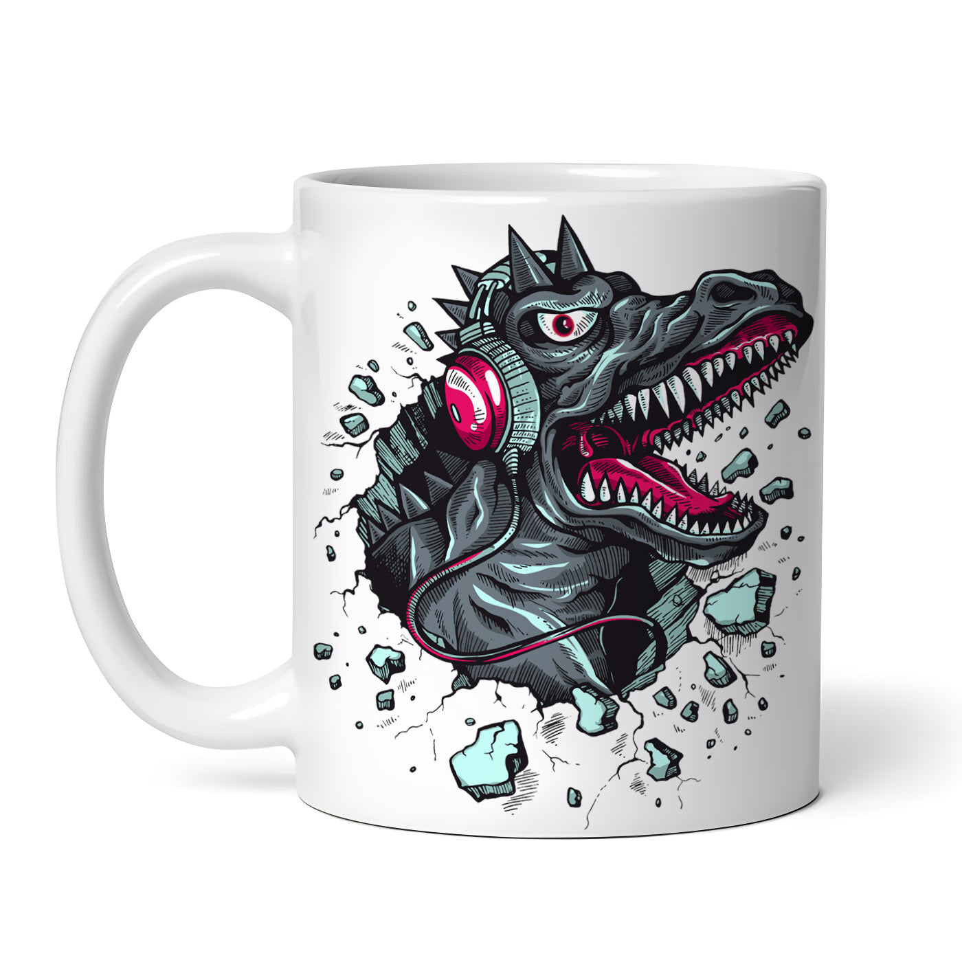- Cana ceramica, Dinozaurul asculta la casti, NO9844, 330 ml, Multicolor