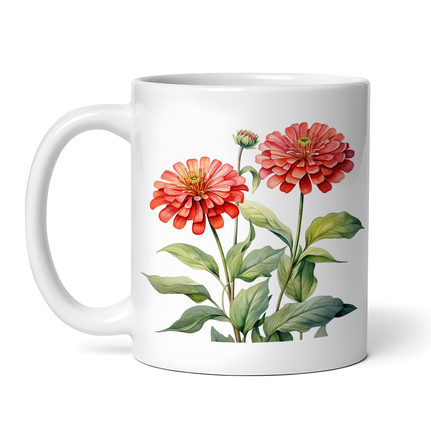 - Cana ceramica, Doua flori zinia cu boboc, NO3661, 330 ml, Multicolor