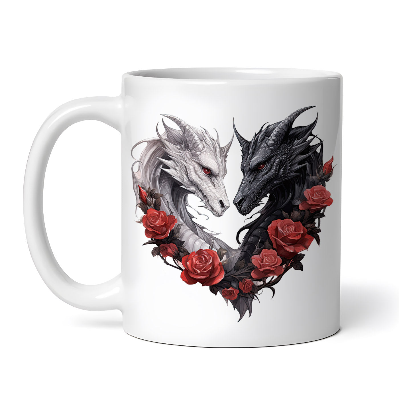 - Cana ceramica, Dragonii indragostiti Iubire si flori, NO2439, 330 ml, Multicolor