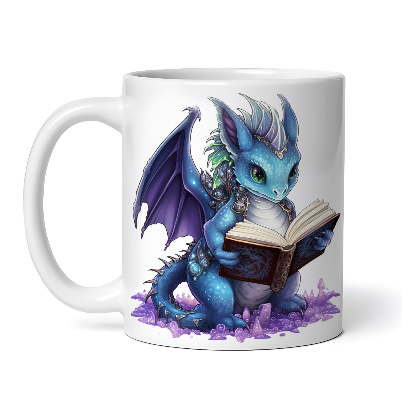 - Cana ceramica, Dragonul albastru citeste cartea magica, NO4509, 330 ml, Multicolor