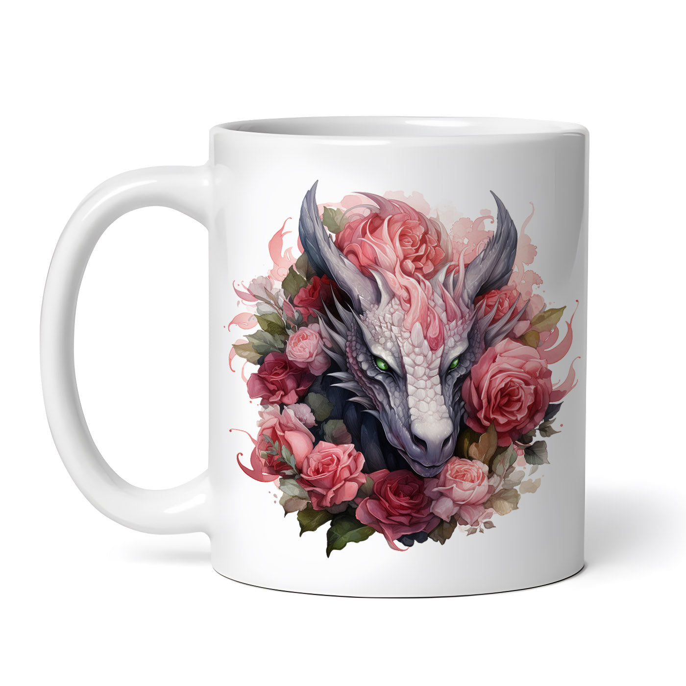 - Cana ceramica, Dragonul cu trandafiri, NO162, 330 ml, Multicolor