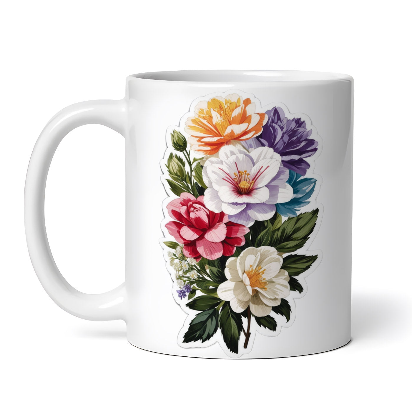 - Cana ceramica, Flori Veronica cu boboci, NO9020, 330 ml, Multicolor