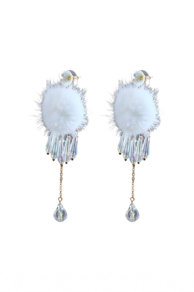 - Cercei dama, Eleganti, Puf, NO1304, 10.5 cm, Alb