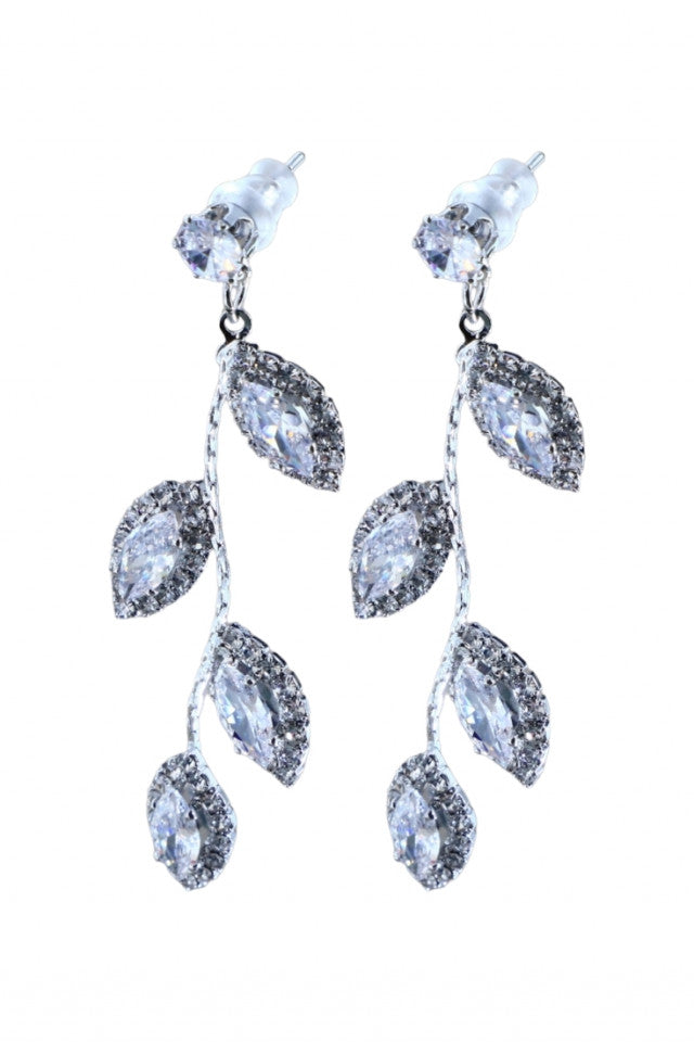 Cercei dama, Frunza, Zirconiu, Otel inoxidabil, NO1378, 5.5 cm, Argintiu