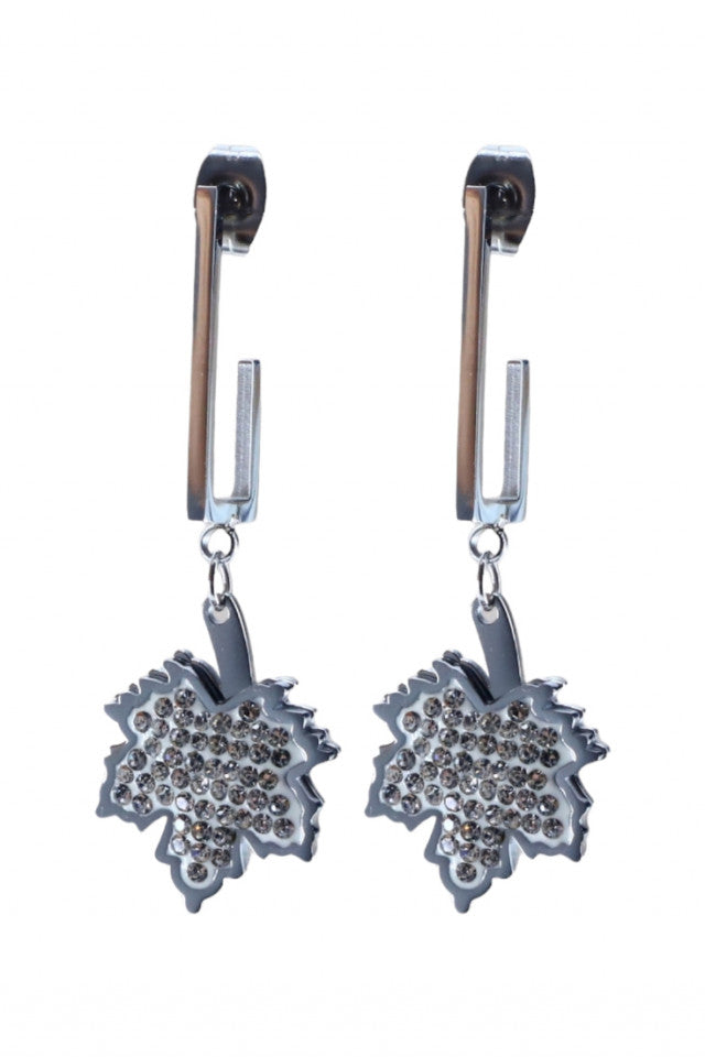 Cercei dama, Frunza, Zirconiu, Otel inoxidabil, NO1846, 4.3 cm, Argintiu