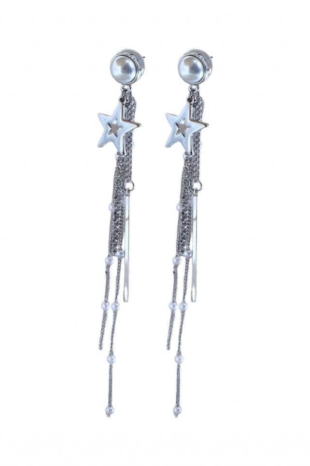 Cercei dama, Lungi, Perla, Otel inoxidabil, NO1319, 7 cm, Argintiu
