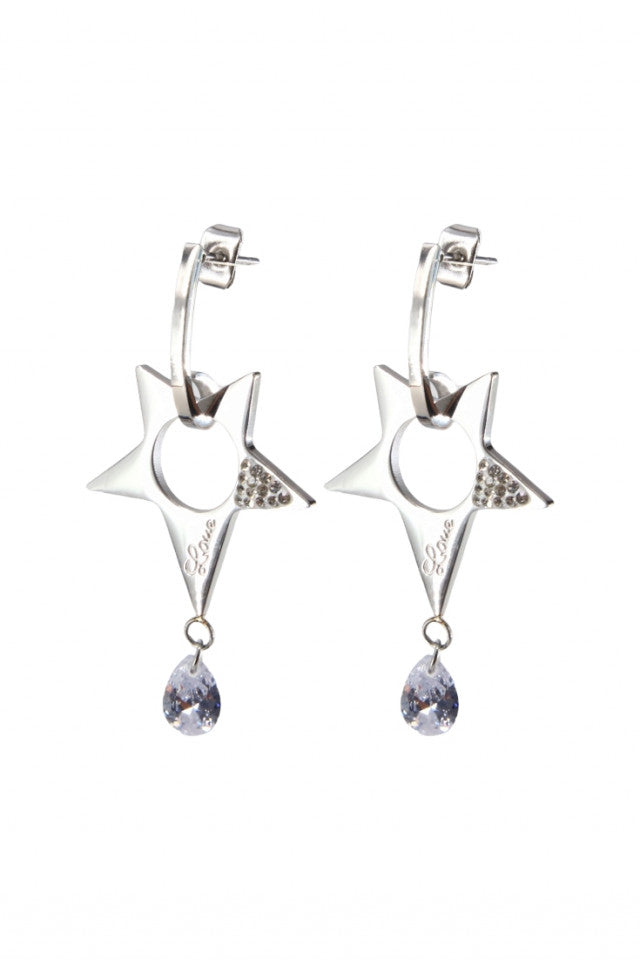 Cercei dama, Stelute Love, Zirconiu, Otel inoxidabil, NO2886, 4 cm, Argintiu