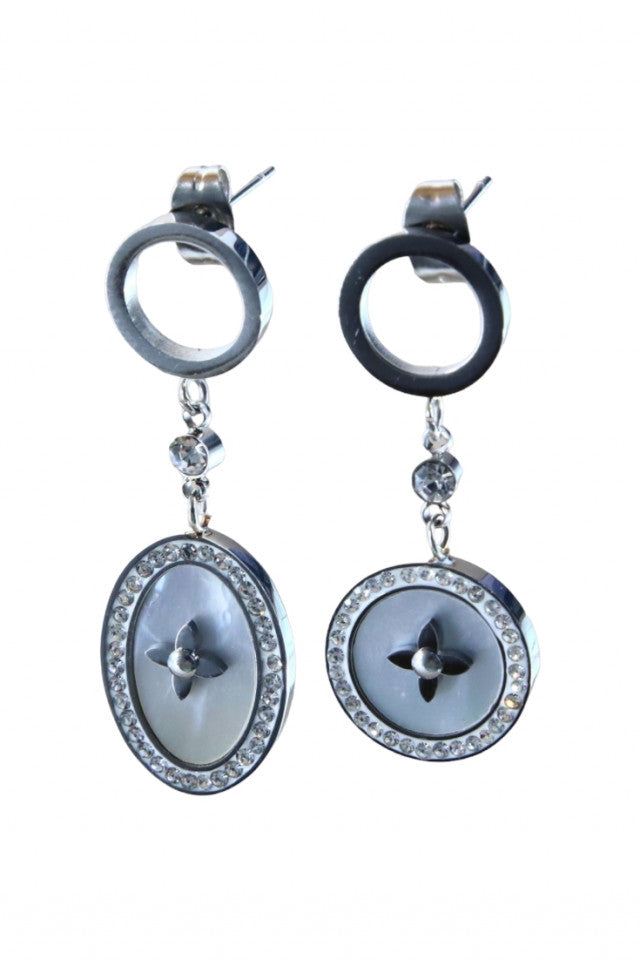 Cercei dama, Eleganti, Marcasite, Otel inoxidabil, NO1312, 8.4 cm, Argintiu