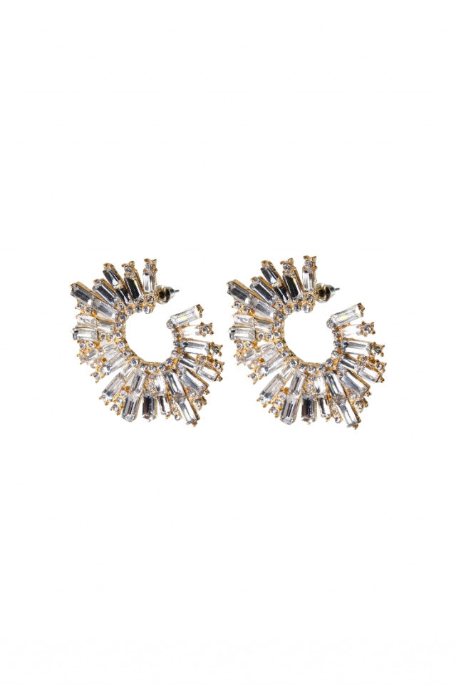 Cercei dama, Eleganti, Marcasite, Otel inoxidabil, NO1299, 7.5 cm, Auriu