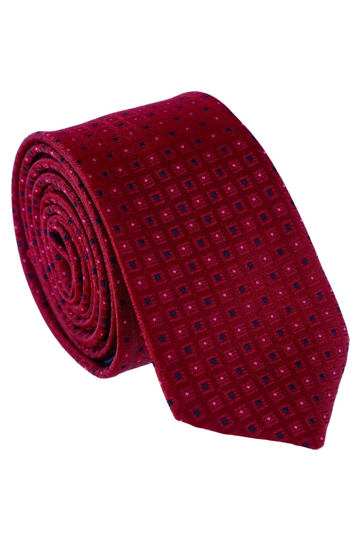 Cravata barbati, Model ingust, Aspect texturat, Patratele, NO62246, 5.5 x 174 cm, Visiniu