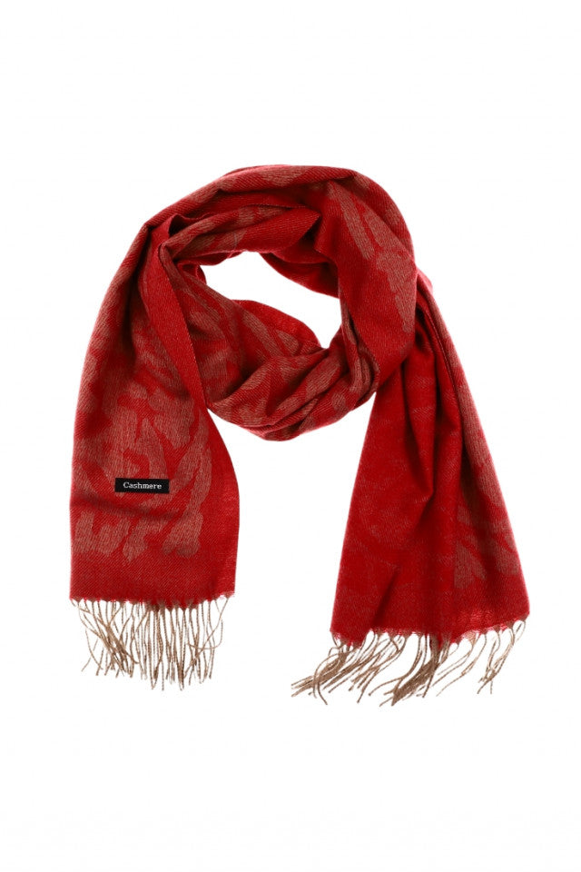 Esarfa de dama, din casmir, cu franjuri, Csm7, 190 x 70 cm, Visiniu