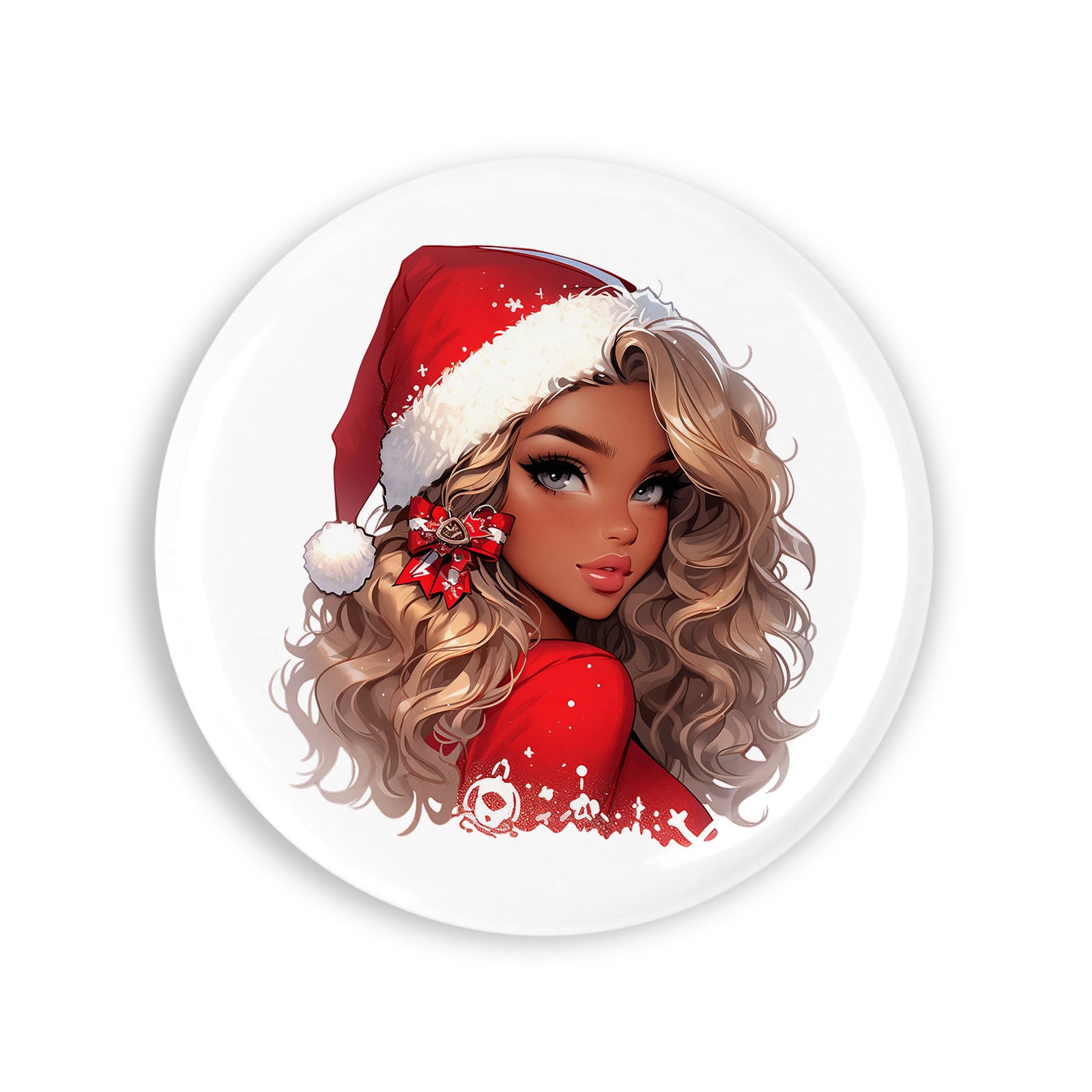 - Set 4 insigne, Blonda cu buze sexy craciunita, NO103, Metal, 44 mm, Multicolor